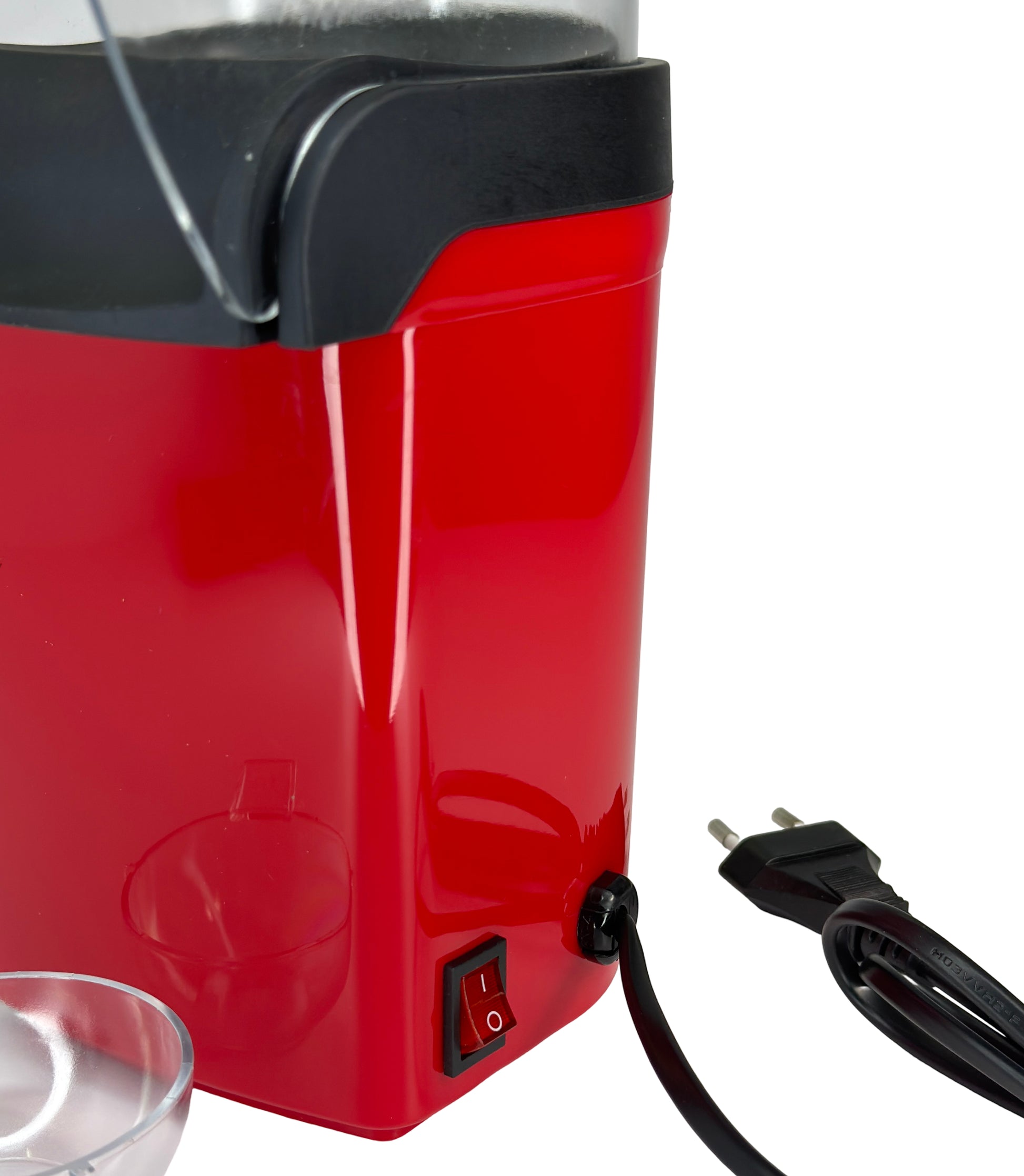Aparatul electric pentru floricele de porumb folosește aer cald pentru a prepara popcorn rapid și fără ulei, păstrând gustul natural și textura aerată.
